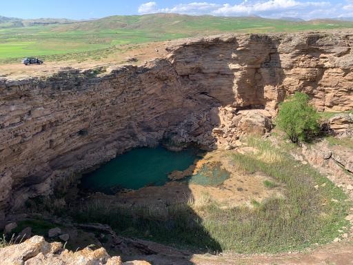 در داخل دره سرسبز و درختان چنار و بید و نیزار و چمن دریاچه ای به قطر تقریبی 80 متر و با جزیره ای شناور مملو از نی به قطر 60 متر وجود دارد که در اثر وزش باد به طرفین در حال حرکت می باشد که به علت لجن زار بودن و نیزار فراوان اطراف دریاچه، نزدیک شدن به محدوده آن مشکل می باشد و تنها از طرف مشرق دریاچه یک راه باریک منتهی به محدوده و ساحل دریاچه موجود است. جزیره متحرک با ساحل کناری دریاچه حدوداً 5/1 متر و بعضی جاها حدوداً 7 الی 8 متر فاصله دارد.